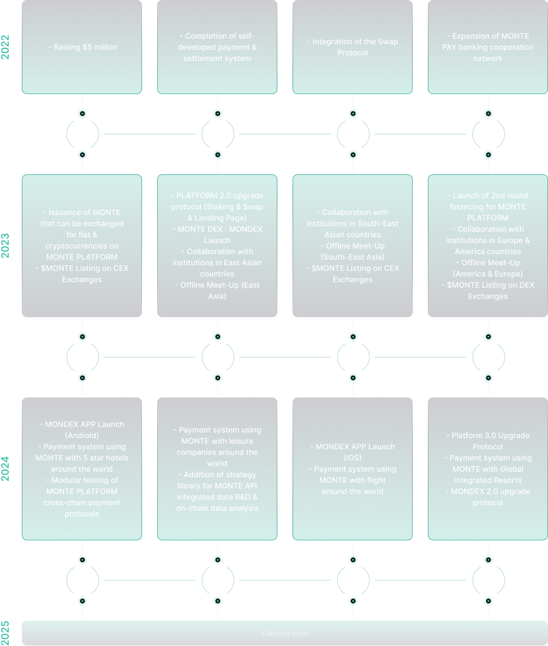 MONTE PLATFORM is also an aggregated payment platform that can be used for conveniently using services (including fee settlement) provided by partners around the world, without the need for paying high exchange fees and conducting time-consuming transfers and remittances.